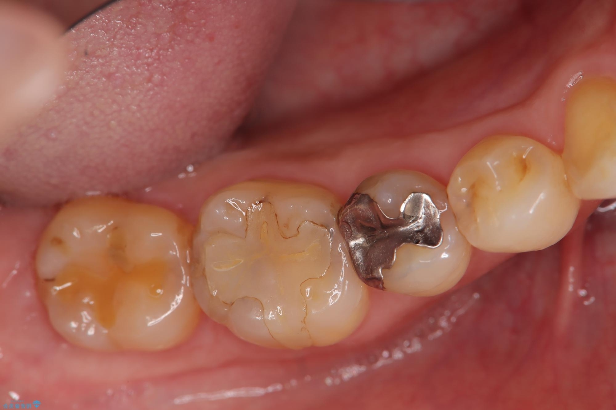 この虫歯を完全に除去した後、その日のうちに精密なセラミックインレーに替える治療を行いました。術後の経過も良好です。